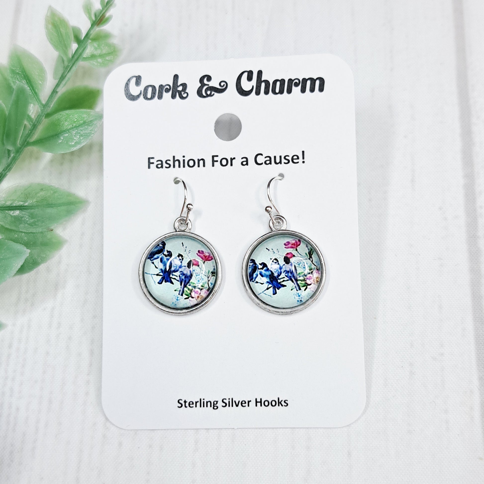 Bluebirds on a Branch Bird Circle Sterling Silver Earrings