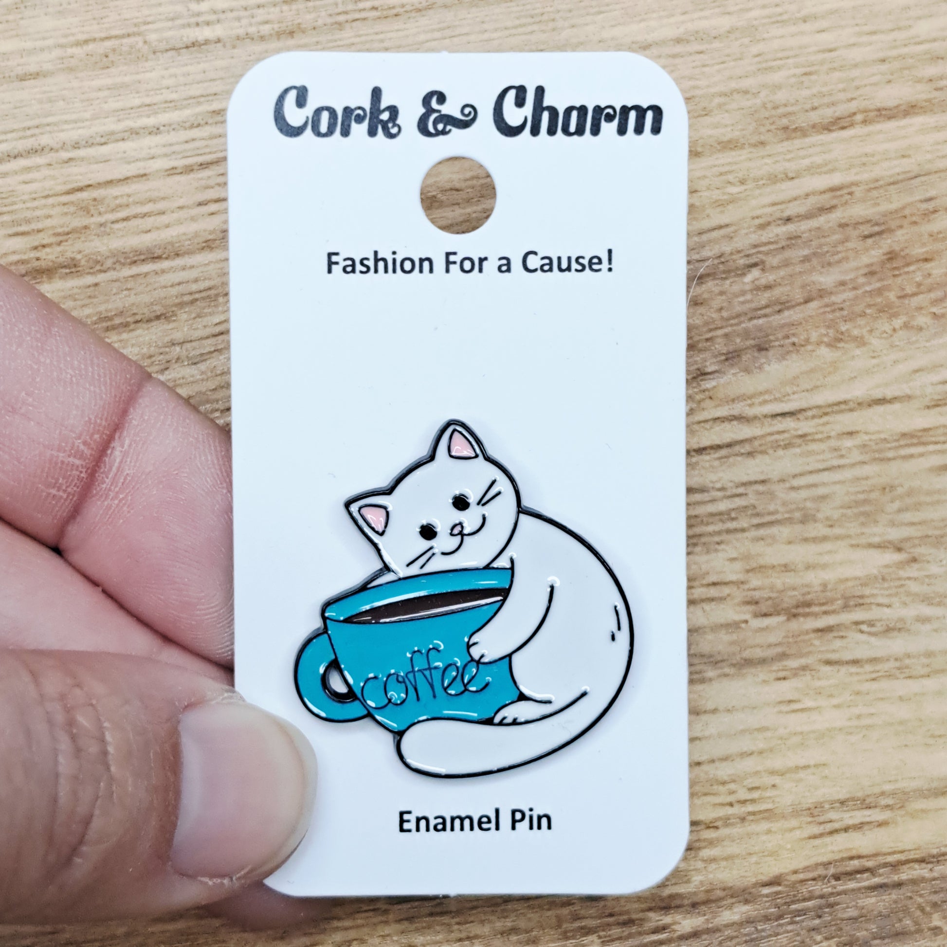 White Cat Coffee Enamel Pin
